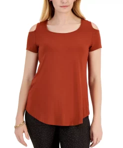 Equal parts effortless and fashionable, this scoop-neck T-shirt from JM Collection is styled with cool shoulder cutouts and a fluid swing hem.