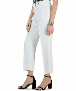Kasper keeps your wardrobe stylishly chic with this pair of straight leg mid rise linen pants. Subtle side slits and an off-center snap loop closure brings the fashionable twist to your outfit with ease.
