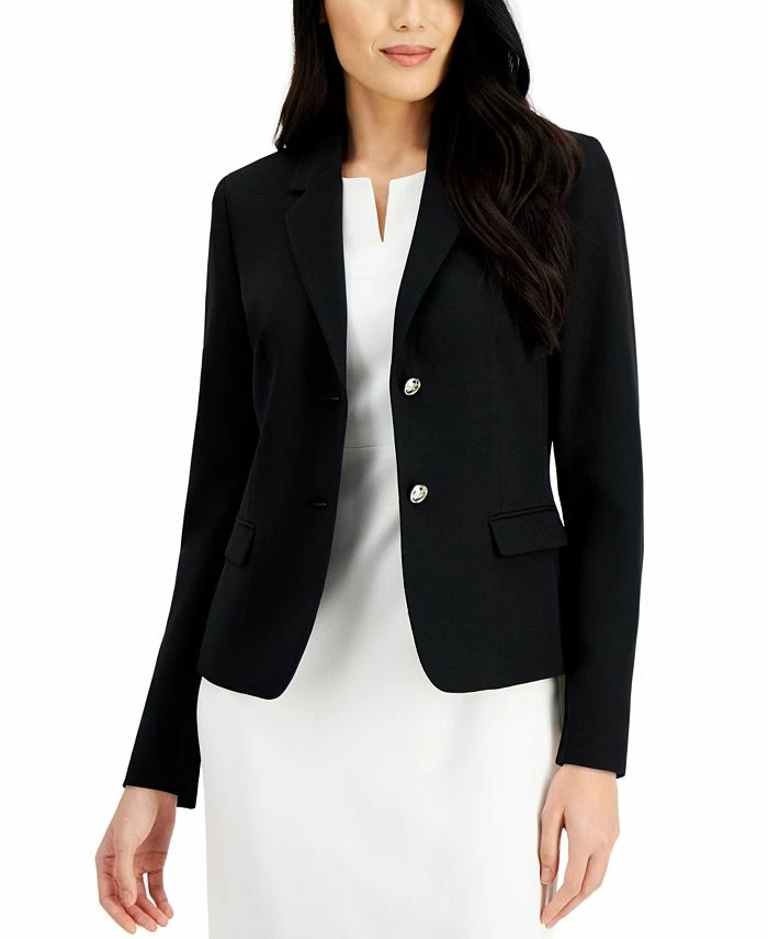 Shiny buttons finish the fine classic lines of Kasper’s notched collar jacket, a versatile mainstay in a career-oriented wardrobe.