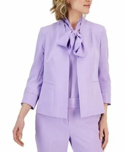 Kasper has the finishing piece to countless suited pants and skirt ensembles with this timeless kiss-front blazer.