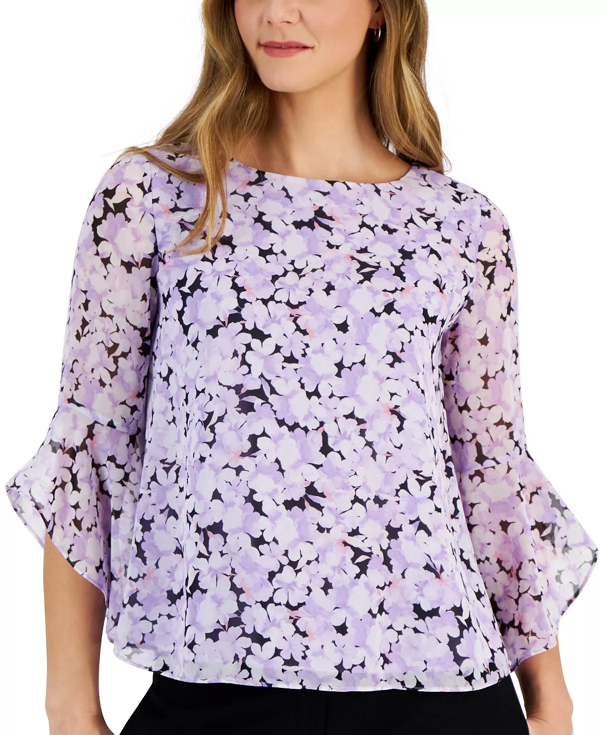 With bold bell sleeves and a sweet floral print, this chic work-ready blouse from Kasper is like a breath of fresh air.