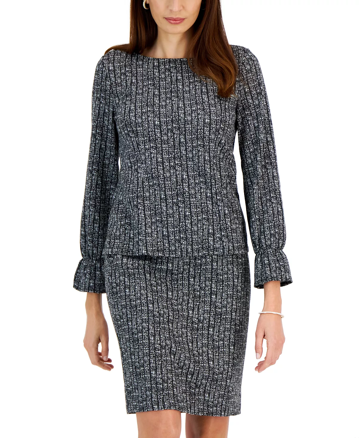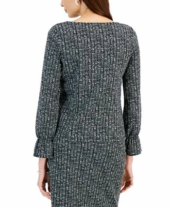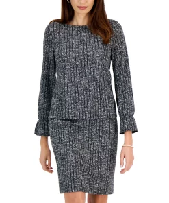 Kasper Women’s Printed Boat-Neck Bell-Sleeve Top