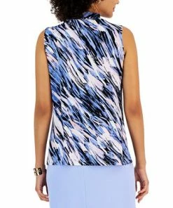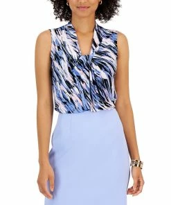 A twisted design updates a classic V-neck on this beautifully printed top from Kasper. A stylish pick that looks great alone or under a blazer.