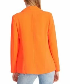 - Turnback stand collar with double snaps; zipper and button front closure