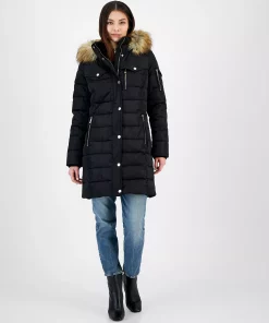 A cozy pick from MICHAEL Michael Kors, this stylish puffer coat features plenty of zip pockets and gorgeous faux-fur trim surrounding the hood.