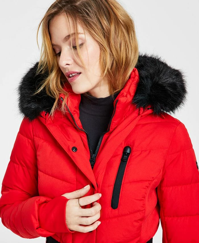 Luxe faux-fur trim and an elasticized belt come together on this chic puffer coat from MICHAEL Michael Kors.