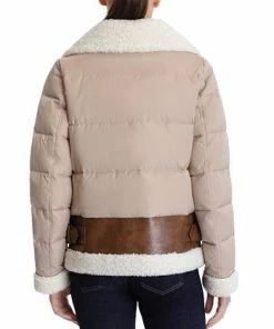 A chic faux-shearling design puts fashion in focus in this down puffer coat from MICHAEL Michael Kors.
