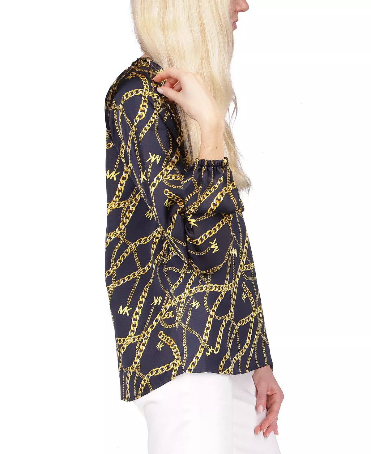 A peasant with polish. This MICHAEL Michael Kors top gives boho chic a reboot with a signature print on hammered satin and a chain at the neckline.