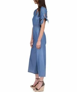 An easy look in light-wash twill, this MICHAEL Michael Kors jumpsuit is updated with fun ties at the sleeves.