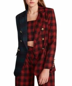Taking inspiration from vintage silhouettes and prints, this Simone blazer brings bold design to your wardrobe with the multi-plaid print on this structured jacket from Steve Madden.