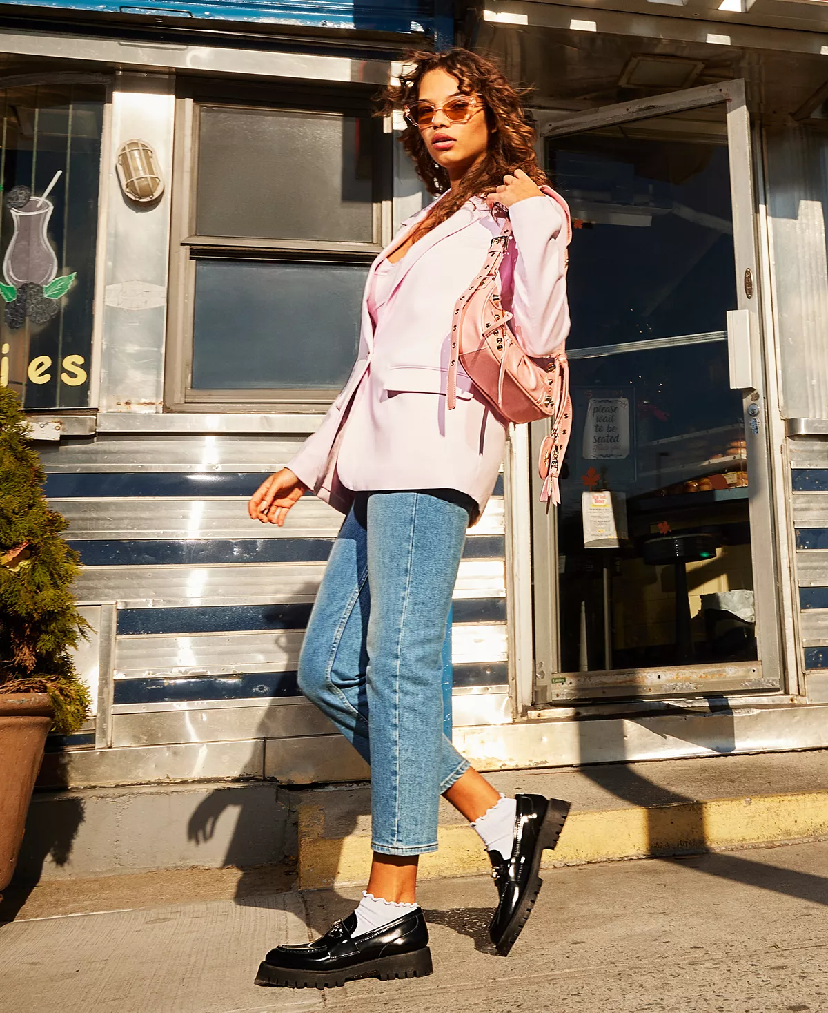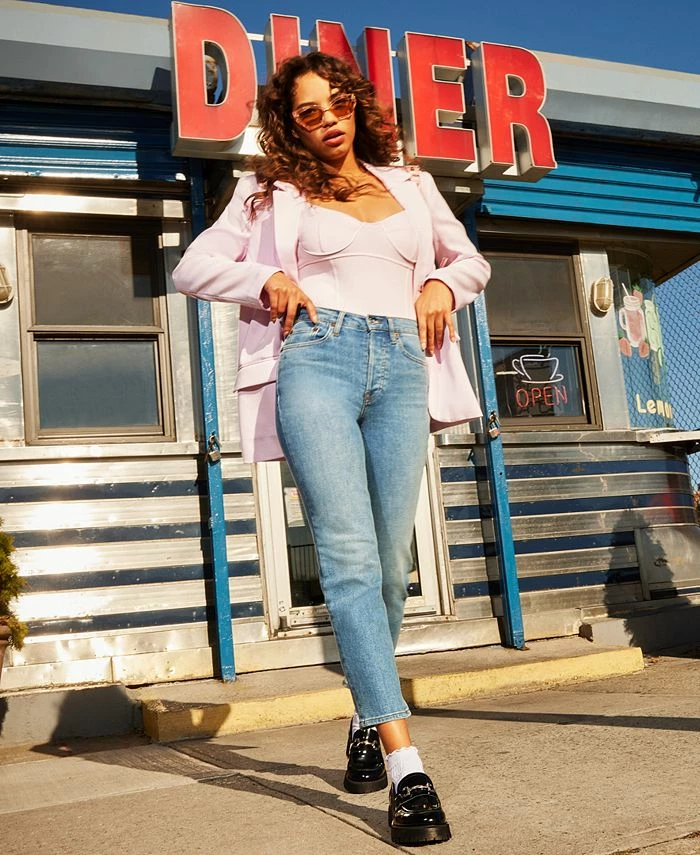 A classic style with a contemporary silhouette, this sleek blazer by Steve Madden combines a one-button, notched collar design with a boyfriend fit for a look that is as versatile as it is chic.