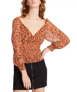 The Shannon top from BB Dakota by Steve Madden is a flirty chiffon blouse with long sleeves, a wide v-neckline, and a smocked waist and wrist detail for the perfect look every time.
