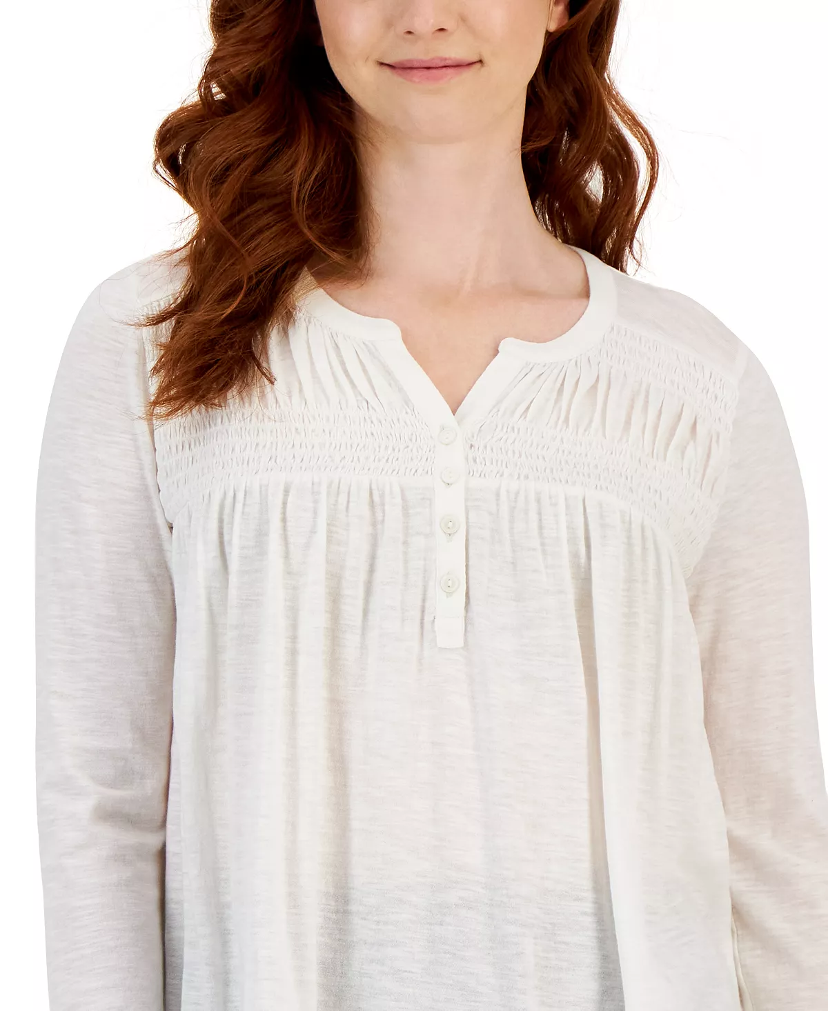 Delightfully delicate, this smocked-yoke top from Style & Co adds a hint of sophisticated style to your wardrobe.