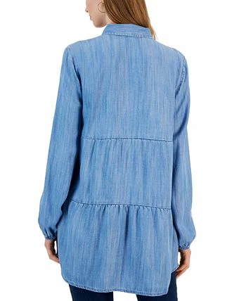 Perfect with leggings, this long, tiered denim shirt from Style & Co is chic and totally on-trend.