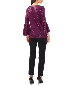 Bring the shine to any occasion with Vince Camuto’s stunning flutter sleeve top, featuring an allover glamorous metallic shine.