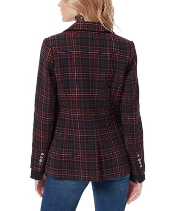 Scattered studs at the lapels and pocket flaps give eclectic edge to the classic plaid of the Margot blazer from Sam Edelman.