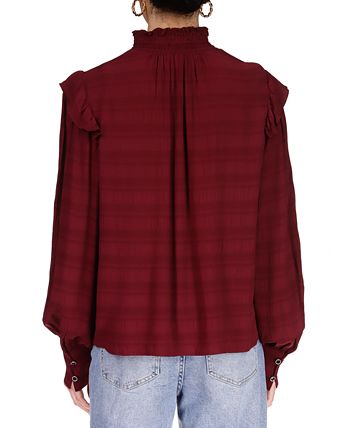 Sanctuary brings the perfect blend of feminine flair to your wardrobe with this mock neck, ruffle shoulder blouse, keeping you closet refreshed with ease.