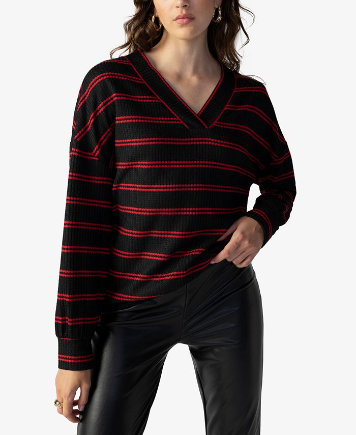 Brightly striped and slightly slouchy, Sanctuary’s V-neck tunic will keep you cozy in textured waffle-knit.