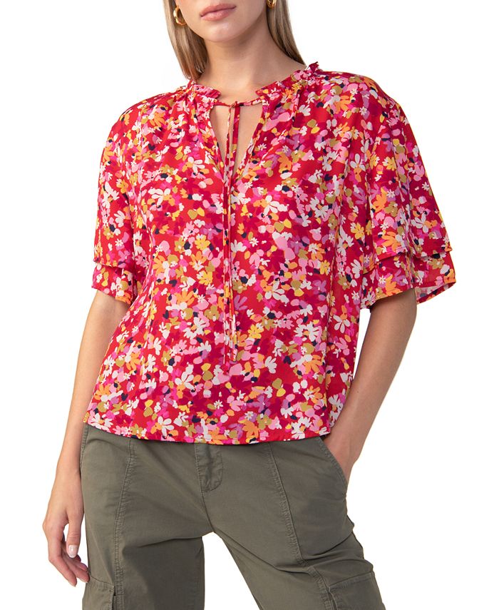 Sanctuary combines an all-over floral print with soft flutter sleeves to create a this feminine cotton top.