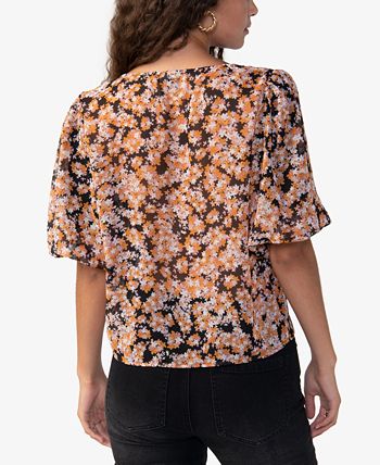 Feminine puff-sleeves lend chic appeal to this button front blouse by Sanctuary.