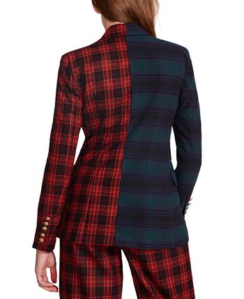 Taking inspiration from vintage silhouettes and prints, this Simone blazer brings bold design to your wardrobe with the multi-plaid print on this structured jacket from Steve Madden.
