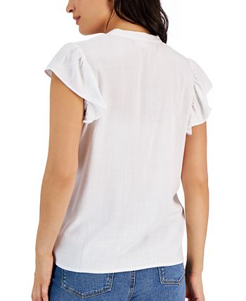 A dreamy look with short flutter sleeves, this Style & Co top features textured woven fabric and a tie neckline that lets you change things up.