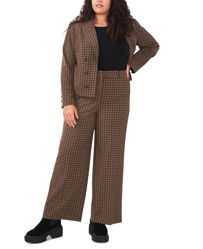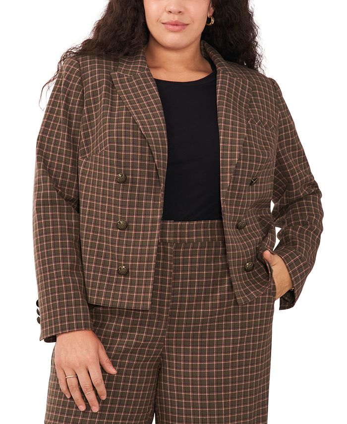 Vince Camuto keeps you professionally polished with this notch collar blazer. Designed to flatter the plus size figure, the double breasted fit and accent buttons bring chic style to your outfit with ease.