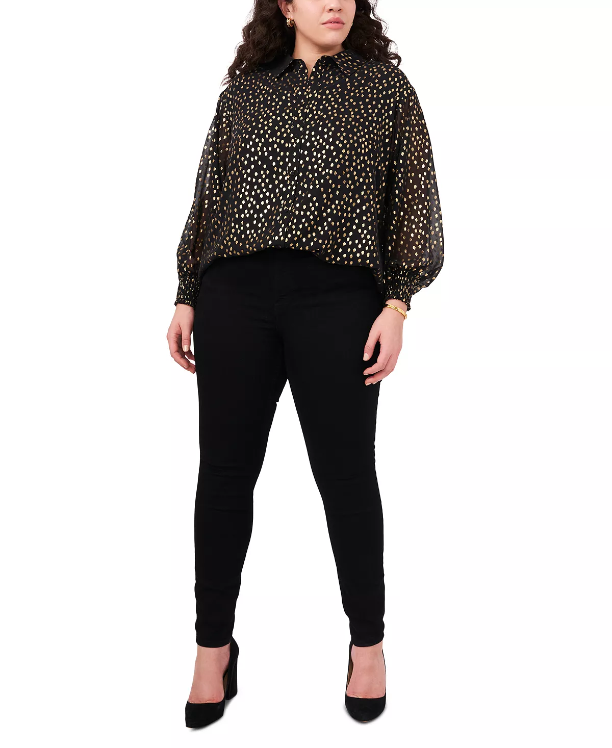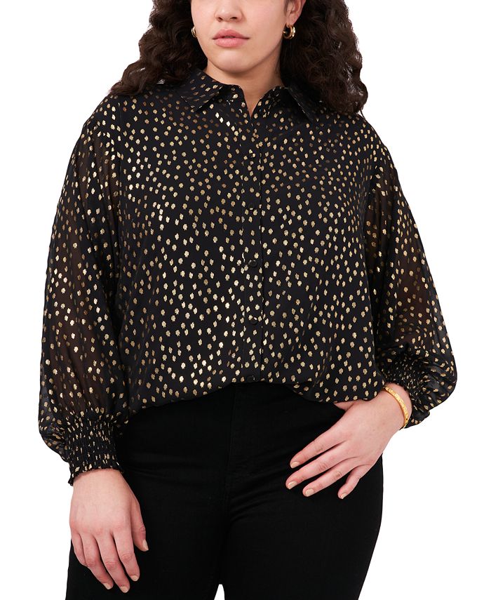 Flashy foil dots brighten the relaxed style of this plus size tunic top from Vince Camuto.