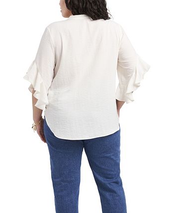 Vince Camuto’s Ruffle Sleeve Henley Blouse is this season’s must have. The fun and feminine ruffles will be a great addition to any wardrobe.